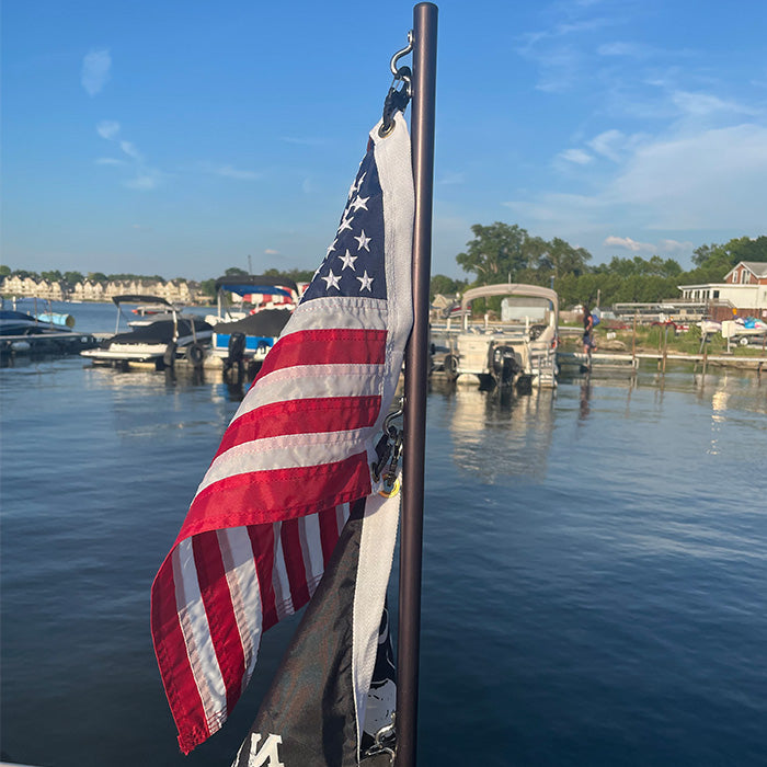 Your Flag Pole is made in the USA with 100% American anodized aluminum base layer, powder coat top layer, stainless steel ring hooks, stainless steel rivets, stainless steel hardware, and the SandBar® connection system.