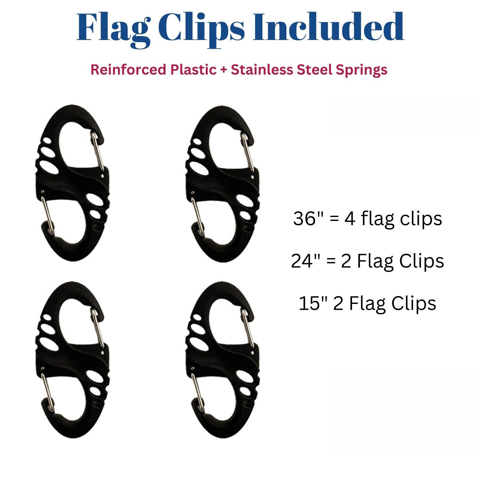 - Flag Clips - 36" receives four flag clips, and the 24" and 15" receives two flag clips